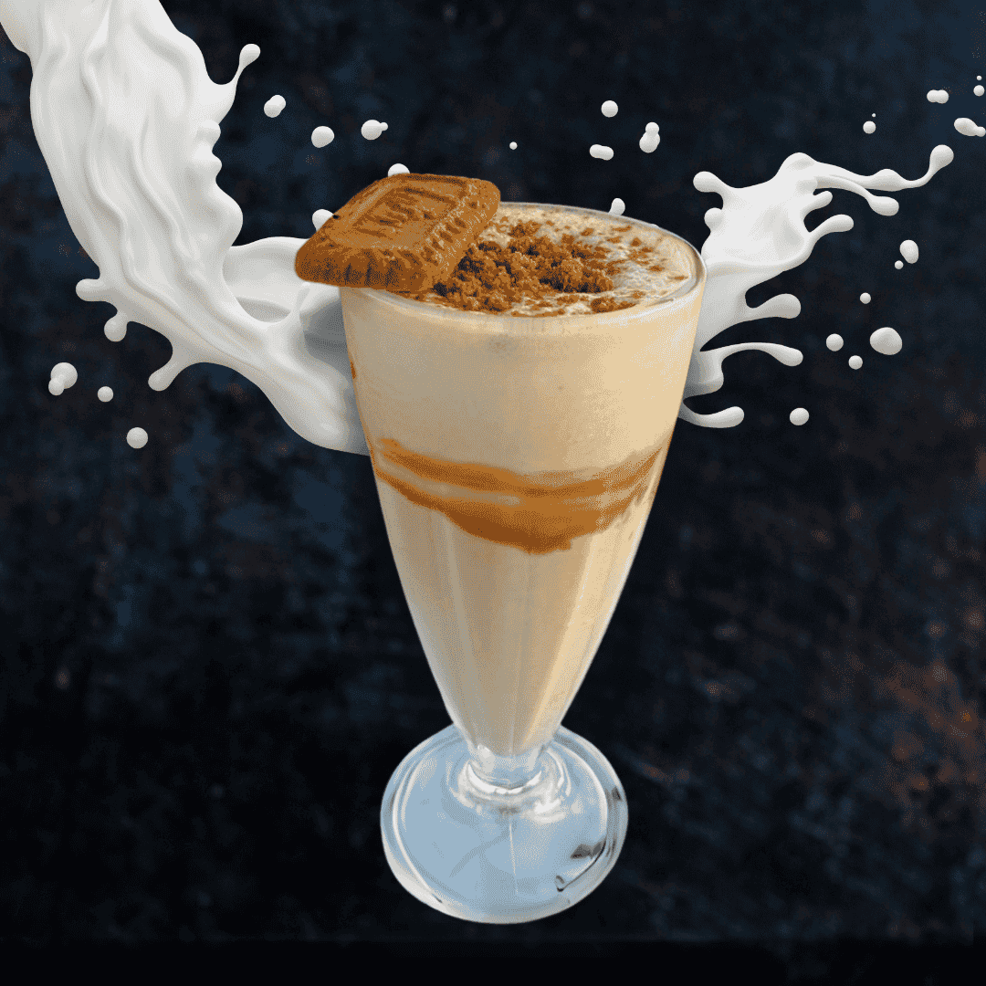 Rich and thick Lotus Biscoff shake, crafted with finest cookies for a velvety smooth treat.