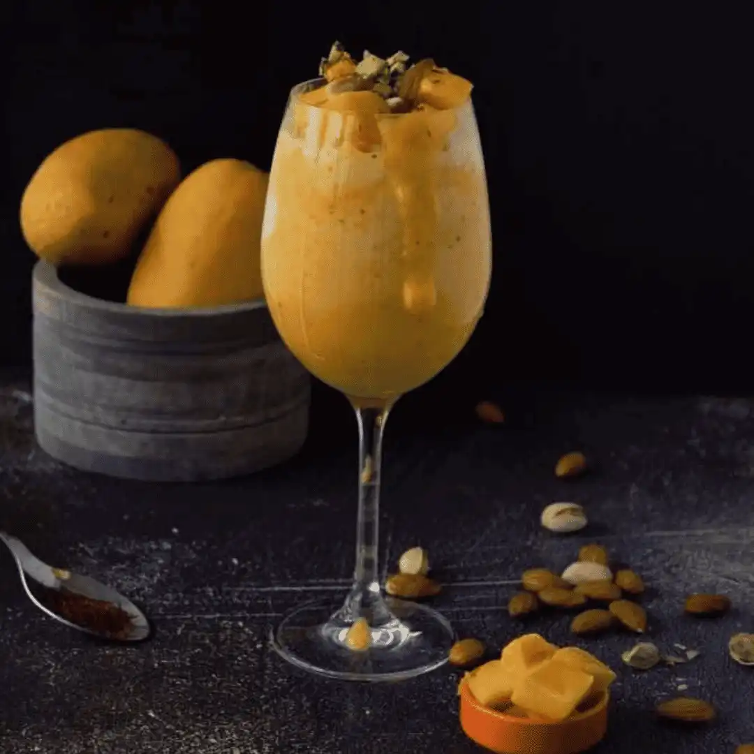 Mango and kaju combo in a creamy delight bursting shake with tropical flavor.
